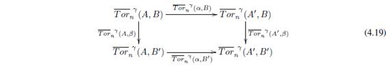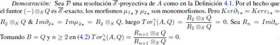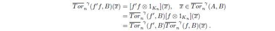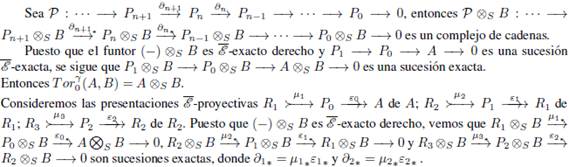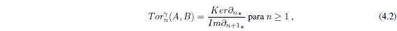 Usando los Λ-módulos derechos proyectivos es posible mostrar la existencia de los bifuntores para n = 1,2,...; que son covariantes en la primera variable y covariantes en la segunda variable (ver [2, IV.11]).
