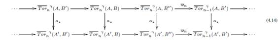 Demostración: Por la Definición 5.5, la Definición 4.3, la sucesión exacta larga (4.13), el diagrama conmutativo (4.15) y la proposición 2.2, resulta que {Hn(−,E)} es una sucesión