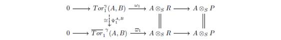 En la cuarta sección, dado un morfismo de anillos unitarios γ: R→S se adapta una teoría relativa para la equivalencia natural de los bifuntores relativos y .
