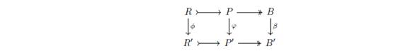 Lema 5.1. [9, Lema 2.2.5] Sean g: A → A' un morfismo de K-álgebras asociativas y f: M→ M' un morfismo de A'-bimódulos. Estos inducen el diagrama conmutativo siguiente