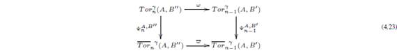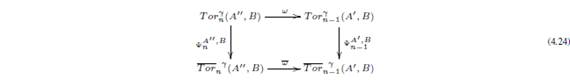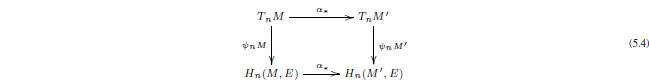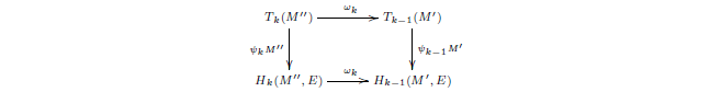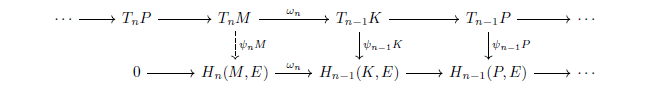 con fila inferior exacta. Esto produce un único morfismo ψnM: TnM → Hn(M,E) mediante ψnM = (ωn)−1ψn−1Kωn.
