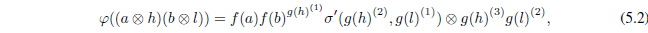 (5.2)(1A ⊗1H) = 1A' ⊗1H’, donde f: A → A’ es un morfismo de K-álgebras, g: H → H’ es un morfismo de K-álgebras de Hopf.