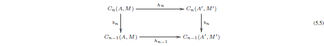 (5.5)Por lo tanto tenemos una aplicación de K-módulos graduado h∗: Hn(A,M)→ Hn(A’,M’)