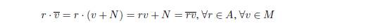 hereda uma estrutura de A-módulo de M. O A-modulo M/N chamado de A-módulo quociente de M por N. O teorema a seguir e o analogo ao teorema do isomorfismo para grupos cuja prova pode ser encontrada em [3].