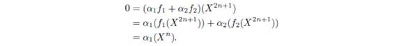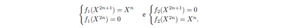 Assim, α1(p) = 0 para todo p ∈ Z[X]. Portanto, α1 ≡ 0. Fazendo o mesmo calculo para cada X2n temos α2 ≡ 0. Logo, {f1,f2} e linearmente independente. Agora, seja f ∈ A. Consideremos β1,β2 ∈ A definidos da seguinte maneira: para todo n ∈ N0,