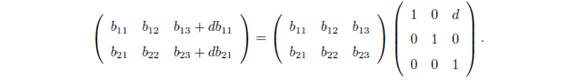 Por fim, para a substituicao de uma coluna pela soma desta coluna com um múltiplo inteiro de uma outra coluna, por exemplo substituir a coluna 3 de B pela soma da coluna 3 mais d vezes a coluna 1 de B fazemos