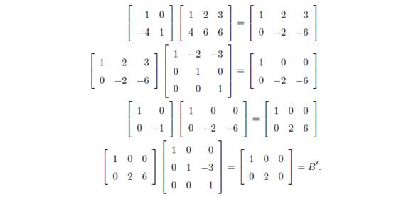 Utilizando essas regras com a matriz de apresentacao B do exemplo 2.10, podemos reduzi-la a matriz