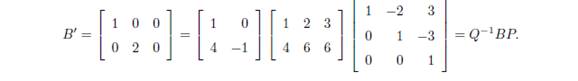 Determinemos as matrizes B0, Q−1 e P, tal que B0 =Q−1BP, onde Q e P sao invertíveis. Realizando operac¸oes elementares nas linhas e colunas de B