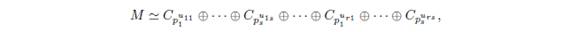 Teorema 4.2 (Unicidade do Teorema de Estrutura). Se um grupo abeliano finito M e uma soma direta de subgrupos cíclicos de ordens potencia de um primo
