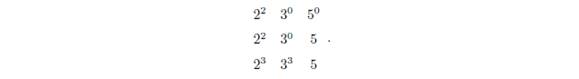 onde r e o número de ocorréncia dos primos que aparecem mais vezes e u1j ≤ u2j ≤ ··· ≤ urj, 1 ≤ j ≤ s. Eventualmente, alguns dos uij terao que ser nulos. Seja di o produto das potencias de um primo na linha i, ou seja,