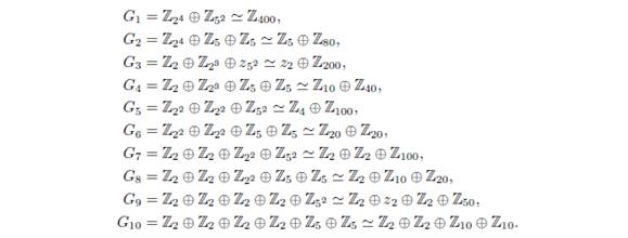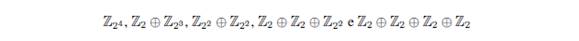 Example 4.4. Vamos encontrar explicitamente todos os grupos abelianos (a menos de isomorfismo) de ordem 400 = 24 · 52. Existem exatamente 5 grupos abelianos de ordem 24, sao eles