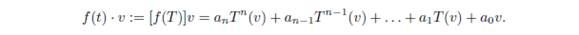 Agora vamos ao objetivo desta secao que e aplicar esse conceito a operadores lineares. Dado um operador linear T : V −→ V em um espaco vetorial V sobre um corpo K podemos definir nesse espaco vetorial V uma estrutura de A-módulo por