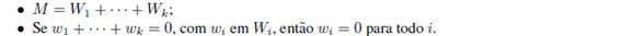 Definicao 2.3. Sejam W1,...,Wk A-submódulos de M. Dizemos que M e a soma direta dos submódulos W1,...,Wk, e escrevemos M = W1 ⊕ ··· ⊕ Wk se:
