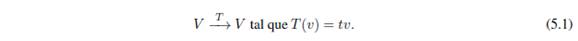[5.1]Sendo V um A modulo, em particular vale a distributividade da soma sobre o produto e entao tc(v +v0) = ctv + tv0 o que significa T(cv + v0) = cT(v) + T(v0), para todo v, v0 ∈ V,c ∈ K. Portanto, a aplicacao T e um operador linear sobre o espac¸o vetorial V .
