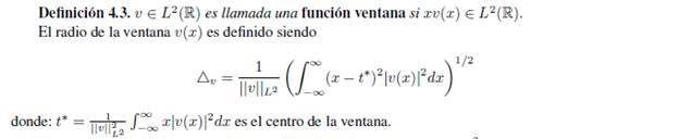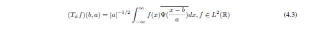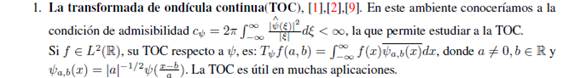 Definición 4.6. La aplicación f → < f,ψt,y >t>0,y∈R es llamada la transformada de ondícula continua.