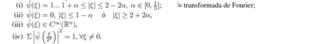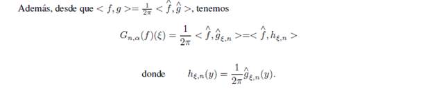 Se observa que α(ξ) juega el papel de los coeficientes de Fourier (o de ”wavelets”). Ver el libro ”Wavelets; Tools for Sciencie and Technology”de S. Jaffard - y. Meyer - R. Ryan (J.M.R.) (citado en [12]) donde encontramos un amplio panorama de esta teoría.