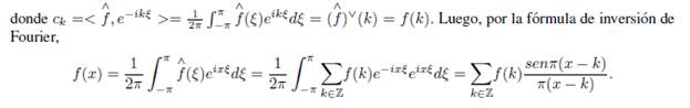 Recordemos al teorema de muestro de Shannon: “Si f ∈ L1(R) tal que el soporte de fˆ ⊂ [−π,π], entonces