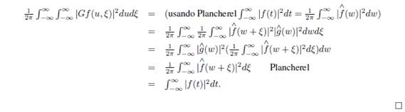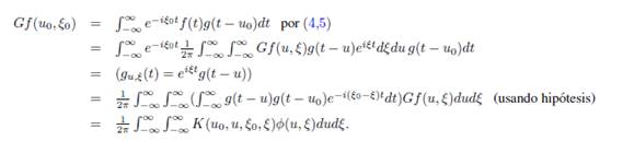 Demostración: Tomemos transformada de Fourier en el lado derecho de 4.7 y cambiando el orden de integración, obtenemos: