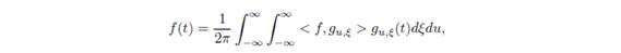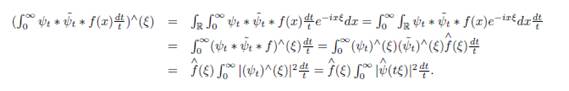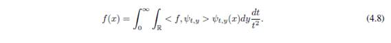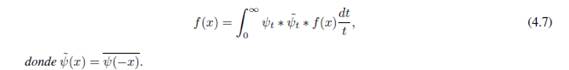 Nota 4.1. Si f ∈ L2(R), entonces f puede ser escrito, vía (4.8), como una superposición de las funciones básicas {ψt,y}t>0,y∈R.ψt,y está a la escala t y está centrada en y.
