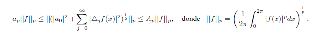 Si p = 2 entonces L2(R1) es un espacio de Hilbert), y a2 = A2 = 1.”
