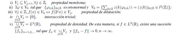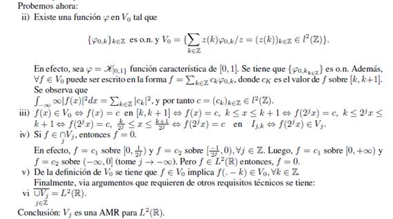Luego, Vj+1 = Vj ⊕ Wj,∀j ∈ Z [tenemos V1 = V0 ⊕ W0;def(x) ∈ V0 ⇔ f(2jx) ∈ Vj y f(x) ∈ W0 ⇔ f(2jx) ∈ Wj, se tiene la igualdad].