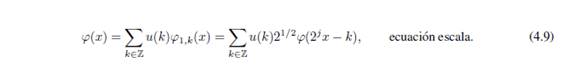 [4.9]donde (u(k))k∈Z ∈ l2(Z) y u(k) =< ϕ,ϕ1,k >. u = (u(k)) se llama sucesión escala.