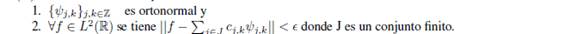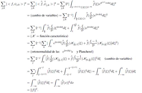 |2 = ||f||2). Si estas dos condiciones se satisfacen, es conocido que ello implica que {ψj,k} sea una b.o.n. para L2(R). En efecto,