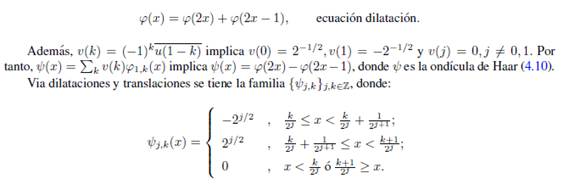 Corolario 4.2. {ψj,k}j,k∈Z es una b.o.n. para L2(R). ψ es llamada la ondícula de Haar. El sistema de Haar {ψj,k} es la más antigua b.o.n. de ondículas.