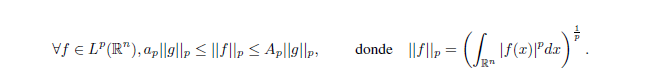 Con los espacios Lp,1 < p < ∞, se tiene la siguiente conexión: “ existen constantes ap y Ap, 0 < ap ≤ Ap, tal que