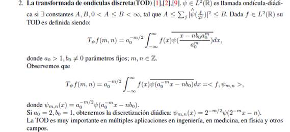 Vivimos una era digital, de la informática, llena de nuevas y novedosas contribuciones a la ciencia y la tecnología; en este panorama la matemática también está presente; así, en la década de los 1980’s surgió una teoría que habría de contribuir en tal desarrollo, la teoría de ondículas (”wavelets”); ver