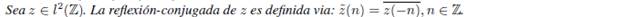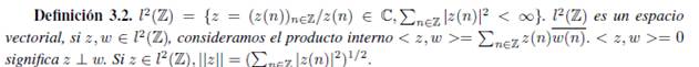 Entremos ahora al espacio de Hilbert particular l2(Z), donde remarcamos que Z es el conjunto de números enteros. Consideramos sucesiones de números complejos definidos sobre los enteros: z = (...,z(−2),z(−1),z(0),z(1),z(2),...) ó z = (z(n))n∈Z.