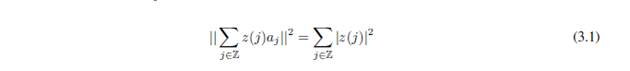 Lema 3.1. Sea H un espacio de Hilbert; (aj)j∈Z un conjunto ortonormal (o.n.) en H y z = (z(j))j∈Z ∈ l2(Z). Entonces la serie ∑j∈Z z(j)aj es convergente en H y tenemos: