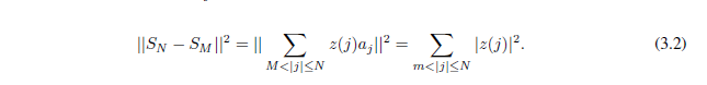 luego (sN) es una sucesión de Cauchy, esto es: dado ε>0, ∃KϵN tal que para N > M > K, ∑M<|j|<N|z(j)|2 <ε.