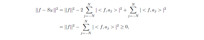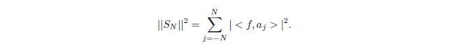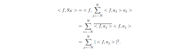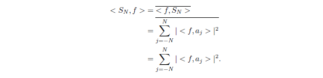 Demostración: Sea SN=∑j=-NN <f,aj>aj, N=1,2,…; entonces