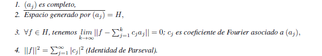 (un)n∈Z es un conjunto ortonormal en H si < un,um >= 0,n ≠ m;< un,un >= ||un||2 = 1.