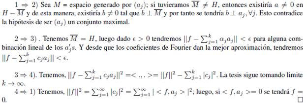 Lema 3.2. Sea H un espacio de Hilbert, (aj) un conjunto o.n. en H; f ∈ H. Entonces: