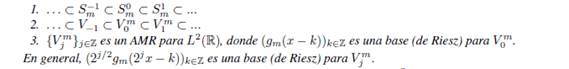 Vm0 denota al espacio generado por{gm(x − k)}k∈Z. Vmj es definido vía dilatación: