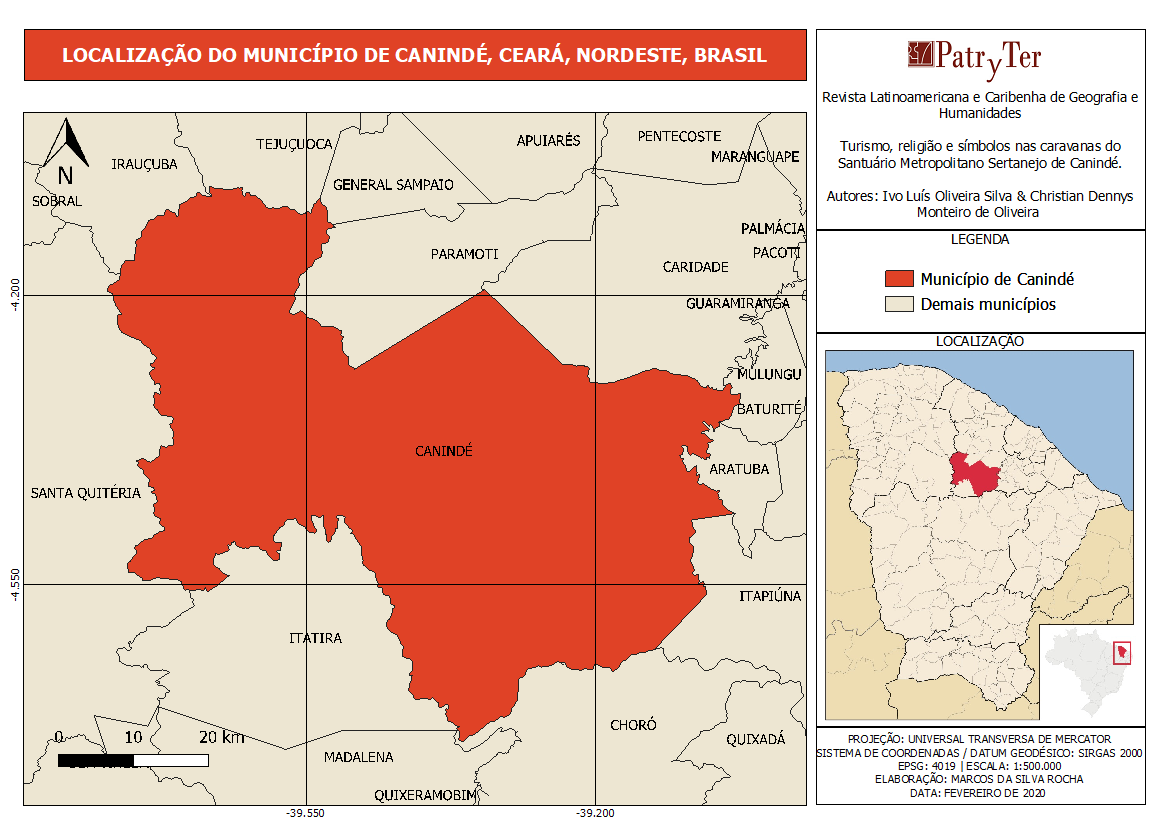 Como citar este artigo: Silva, I. L. O.; Oliveira, C. D. M. (2020). Turismo religioso e devoção nas caravanas do Santuário Metropolitano Sertanejo de Canindé, Brasil. PatryTer – Revista Latinoamericana e Caribenha de Geografia e Humanidades, 3 (5), pp. 83-96. DOI: https://doi.org/10.26512/patryter.v3i5.25193