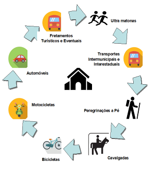 De uma maneira geral, podemos compreender que a experiência da viagem é tocada pelo vínculo do movimento, do distanciamento do cotidiano e da aproximação com o sagrado. Certamente, as informações se dão em um contexto fluente de relações. Sendo preciso ultrapassarmos as aparências e vislumbramos as peregrinações esportivas (como as ultramaratonas e as ciclo-romarias), as peregrinações turísticas (fretamento rodoviário), as peregrinações religiosas (caravanas familiares) e as peregrinações com envolvimento institucional (moto-clubes).