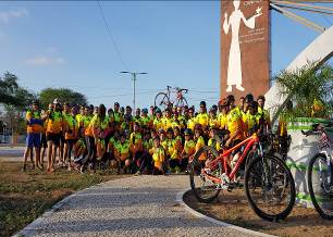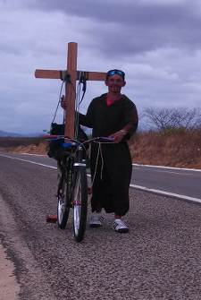 Como vimos, há uma multiplicação das possibilidades de ir em romaria. Na figura 7, a ritualística da peregrinação penitente ganha adereços da pós-modernidade. Na ciclo-romaria os ciclistas não estão unidos a um credo único, a mediação institucional fica por conta dos grupos de ciclistas, o cultivo da subjetividade da peregrinação com a existência do intercâmbio, turismo, prática esportiva e eventos de caráter social. No cortejo das bicicletas vão 120 ciclistas, percorrendo 125 km entre o Fortaleza e Canindé, em 9 horas de pedal, 4 paradas para descanso, 750 litros de água mineral e 450 lanches distribuídos entre os participantes.