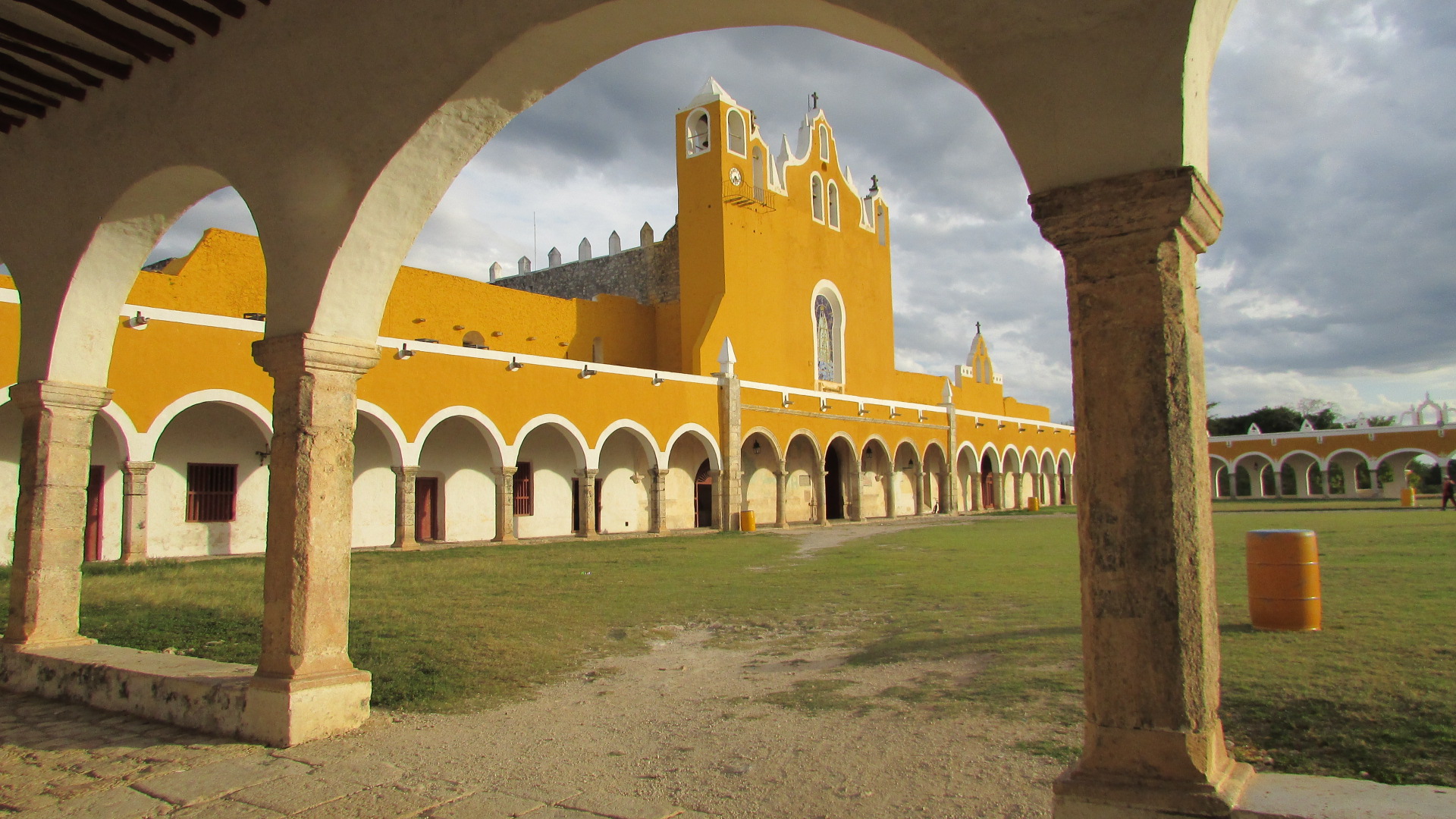 Convento franciscano de San Antonio de Padua, Izamal, Yucatán, México. Detalles de los arcos que enmarcan el atrio que servía como espacio de reunión con los indígenas.