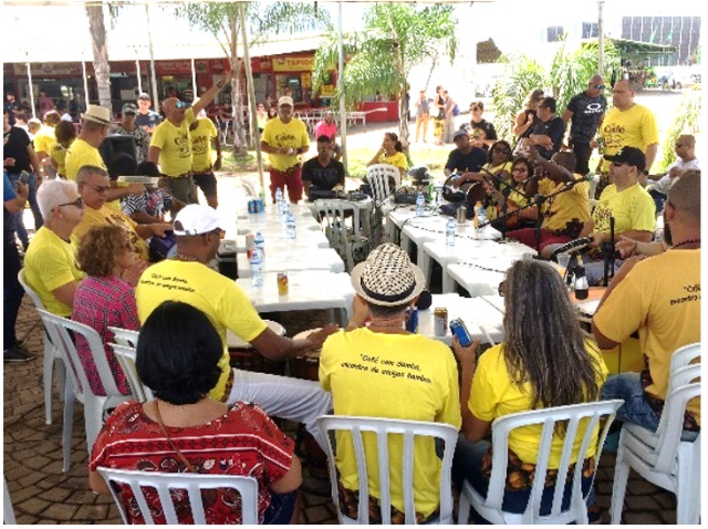 Assim, a partir de 2014, os “Coletivos de Rodas de Samba”, também conhecidos como “Rodas de Samba Democráticas”, surgem no Distrito Federal. Caracterizados como encontros de sambistas, estudantes e simpatizantes do samba, especificamente do “samba de raiz” e do “samba autoral de Brasília”, essas rodas ocorrem em áreas públicas localizadas nas áreas periféricas, principalmente em praças, feiras e quadras comerciais das Regiões Administrativas, para tocar, cantar, dançar e divulgar o samba tradicional.