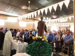 Apesar das propostas e da realização de eventos paralelos, o júbilo em honra ao santo seguiu normalmente seu cronograma e o pequeno santuário acomodou boa parte da população de San Jerónimo, como mostra as figura 10 e 11. Quase toda a celebração foi proferida em guarani, desvelando o encontro de fragmentos de patrimônio-territorial presentes no bairro: a memória indígena sendo revivida pela ritualidade presente na manifestação local, realizada no oratório demarcado por afetividades que possibilitam a trama única de San Jerónimo.