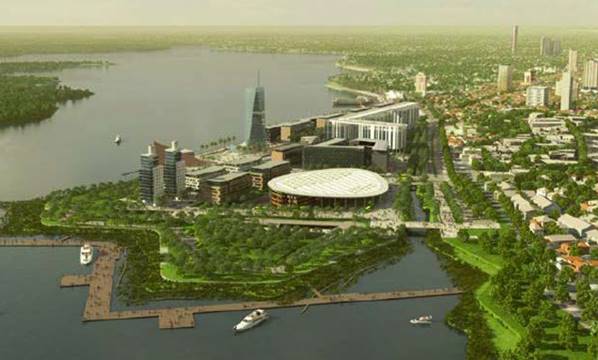 O que podemos observar é que San Jerónimo está no meio de uma empreitada modernizante e que sua imagem destoa das pretensões dos planos e projetos que o inserem em seus objetivos. O centro comunitário contrasta da paisagem do bairro, como mostra a figura 6, aproximando-se mais da proposta de renovação do porto de Assunção, ilustrado na figura 7. Esse novo momento, que delineia a revitalização da zona portuária da cidade e sua reconfiguração nos moldes de modelos replicáveis, como é o caso do Porto Madero em Buenos aires, implica na possível realocação das famílias de San Jerónimo que vivem na zona mais baixa e vulnerável do bairro.