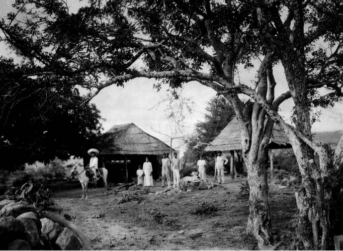 Y todo el que se quedaba, le hacían una casa de tejamanil, había tejamanil. Le hacían una casa pa dormir y una cocina pa cocinar. Y si no ibas tú a trabajar, te sacaban, te sacaban en puerta [indica que se los llevaban con las manos atadas al frente, como prisioneros] Sí, el ese pistolero de los haciendados traía un treinta[iii] aquí [señala el hombro] y una carrillera. Entonces, los amarraban así a pata, así a las cuerdas y él a caballo y el otro jalando. Ahí va jalando, jalando, hasta que brincaban arriba, ahí te soltaban (Entrevista concedida por el señor JR (n.1925) en Nueva Italia, municipio de Múgica, abril de 2013 ).