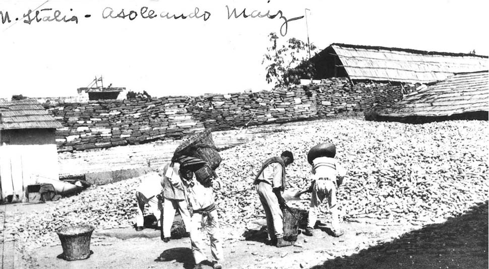 Pero sí me acuerdo que los trabajos de ellos se manejaban por medio de gentes de confianza de ellos, de allá, italianos, eran italianos. Estaba como un señor, que lo cargaban en el campo, un Pedro Ñequis [Gnecchi]; un Massini, que le decían, que tenía un bracito trozado; aquí en la maquinaria que usaban ellos para la trilla de los arroces era Orio […] ese señor, ese era de confianza de ellos para trabajar la máquina esa que majaba el arroz, majaba la granza (Entrevista concedida por el señor JMP (n.1924) en Nueva Italia, municipio de Múgica, abril de 2013).