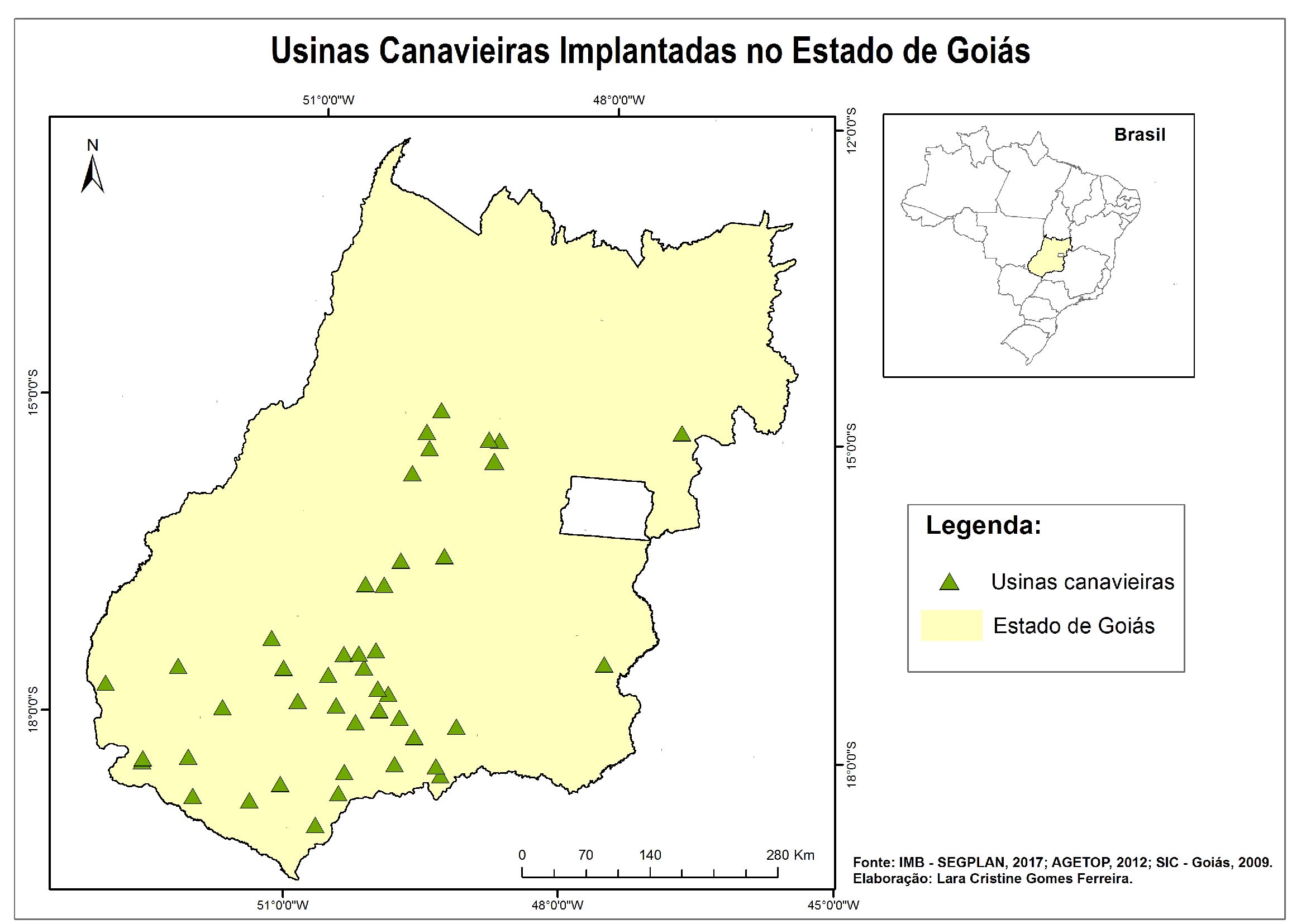 O estado de Goiás é hoje o segundo maior produtor de cana-de-açúcar do Brasil, atrás somente do estado de São Paulo. Em Goiás, algumas regiões destacam-se na produção canavieira e em empreendimentos canavieiros implantados. Percebe-se que há um eixo preferencial de espacialização das usinas, que coincide com uma malha viária desenvolvida e disponível (principais BR’s e GO’s) e com as melhores terras agricultáveis. Esse eixo corresponde ao centro norte e ao sul / sudoeste do estado de Goiás.
