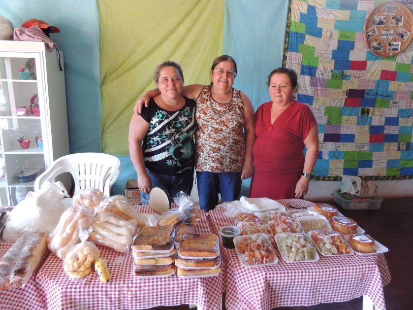 Outros alimentos são produzidos e comercializados na cidade, na sede da Cooperafi, ou na feira do produtor rural de Itapuranga. Alimentos, como: mamão, laranja, abóbora, mexerica e melancia são produzidos e vendidos nas feiras e também diretamente aos centros de abastecimentos (CEASA’s) de Goiânia e Brasília, principalmente. Há também, dentro da Cooperativa, um grupo de mulheres, denominado “Mulheres Rurais do Xixá[ix]”, que produzem bolos, doces, frangos, ovos e artesanatos e os vendem, todas as terças-feiras, na sede da Cooperafi, como pode ser visualizado na figura 5.
