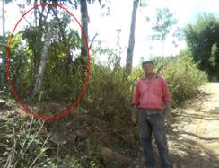 Deparou-se com uma situação mediante a placa de entrada da Fazenda Cafundão encontrada durante a Travessia. Ao indagar o senhor A. acerca de quem colocou aquela placa, que está no ponto mais baixo da vertente, ele responde que foi alguém [que] pôs isso aí. Pediu-se para que ele ficasse mais perto da placa, para que uma foto fosse tirada marcando a entrada do assentamento. Sem mover os pés, ele, que estava há uns 20 metros vertente acima, grita que a foto tinha que ser tirada lá, e não aí. Tirou-se a foto da placa sozinha, e encaminhou-se na direção do senhor A. A foto que ele queria foi tirada, e só se percebeu posteriormente a importância desta. Confirmou-se, também, a partir desta ocasião que a cerca descreve um marco de território. (Rúbio, 2015, p. 215-216).