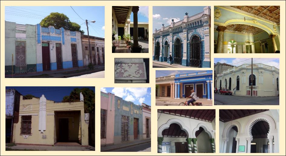 En la ciudad se mantiene en primer término, una extensión de las estructuras urbanas compactas de casas de fachada continua del período colonial, muchas de estas incluso mantienen la estructura colonial y se refracciona la fachada y la primera crujía con los nuevos elementos del eclecticismo regional, donde se complejizan los pretiles, añadiéndoles balaustres, copas, macetas y esferas. En la tradicional fachada aparecen los vanos de las puertas y ventanas, adornados por platabandas molduradas con múltiples y caprichosos motivos florales, en el caso de presentar portales, estos se caracterizan por el empleo de diversos tipos de columnas con base y fustes decorados, capiteles de diversas formas, desde los clásicos hasta innovaciones regionales, y en el caso de tener más de un nivel los balcones asumen parte de la carga decorativa de la edificación.